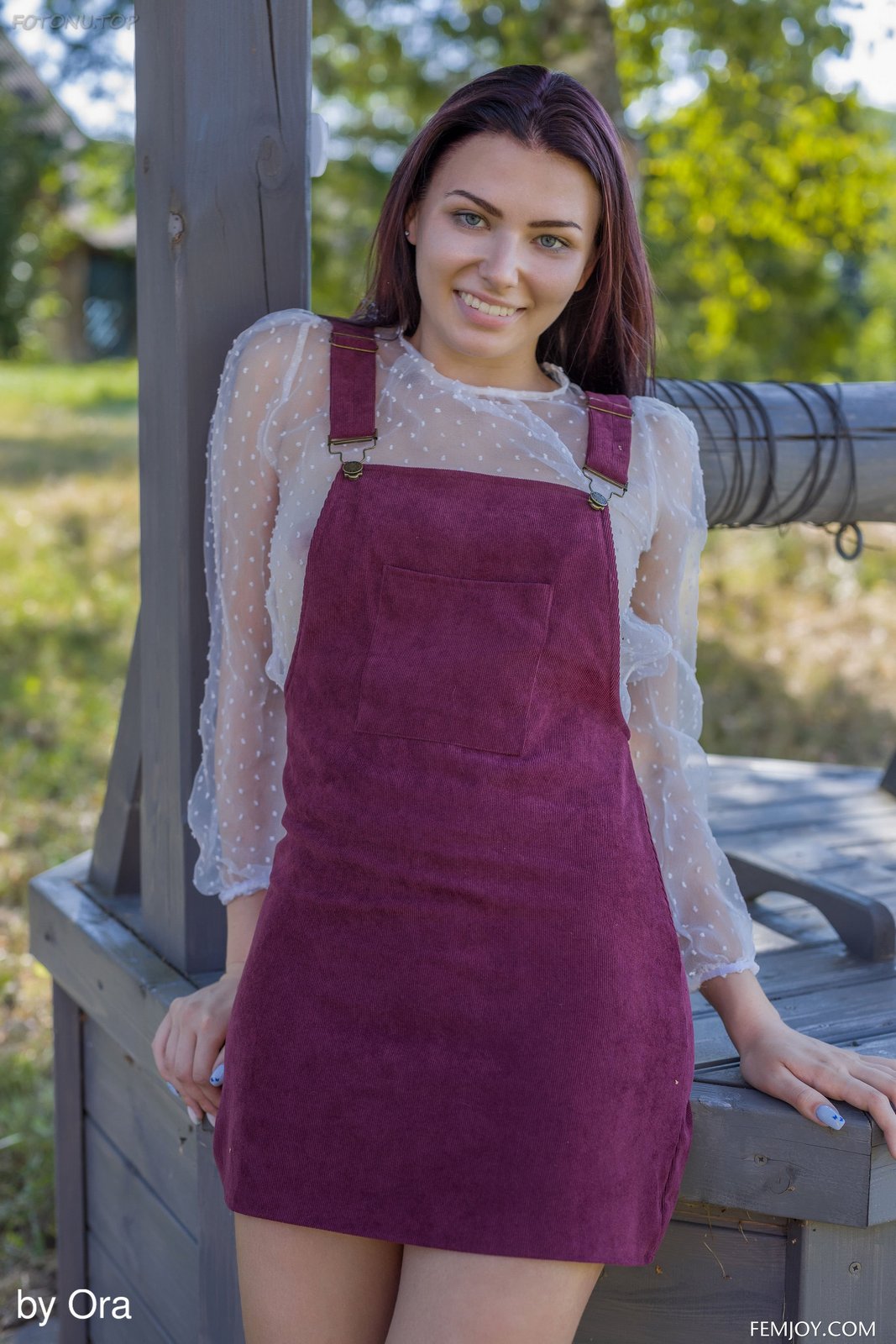 Описание: Красивая городская девчонка, ради новых интимных фоток отправилась в деревню, где устроила откровенную фотосессию возле колодца. Это именно то, что нужно было молодой особе и пока никто не пришел за водой, юная сучка быстро сняла с себя бардовое платье. Оголив маленькие сисечки, пошлячка быстро раздвинула в стороны ножки и показала сладкую письку с большими половыми губами.
