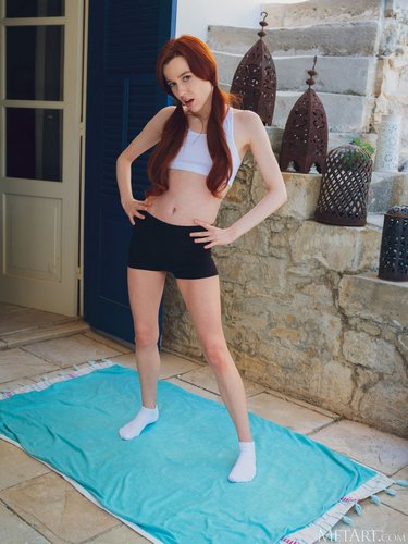 Описание: Кто бы мог подумать, что фитнес тренировка так сильно возбудит эту милашку с рыжими волосами. Занимаясь тренировкой, юная телочка с косичками на голове, так сильно завелась, что быстро разделась. Ну и решив немного передохнуть, плохая телочка занялась своим телом. Позируя на камеру, рыжуха хвастается накаченной попкой, а также ухоженной писечкой, которую без конца и в разных позах показывает перед объективом.